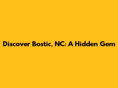Discover Bostic, NC: A Hidden Gem
