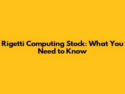 Rigetti Computing Stock: What You Need To Know