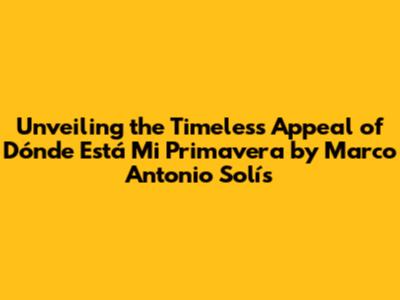 Unveiling The Beauty Of 'Dónde Está Mi Primavera' By Marco Antonio Solís