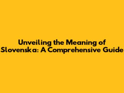 Unveiling The Meaning Of 'Slovenska': A Comprehensive Guide