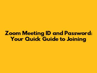 Zoom Meeting ID And Password: Your Quick Guide To Joining